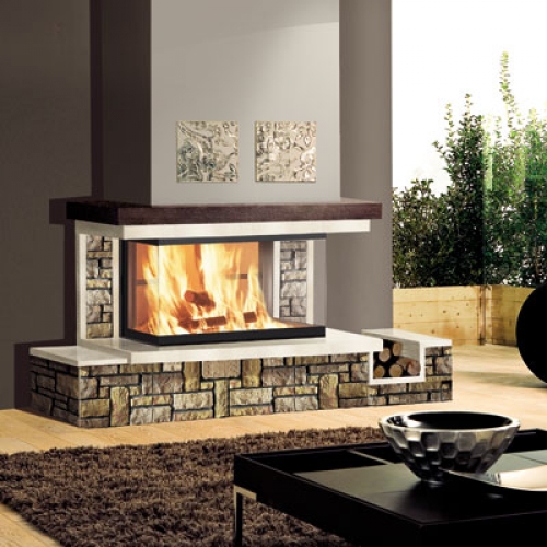 Облицовка оснащена удобной банкеткой, которую можно использовать в декоративных целях или сугубо практической – как удобную нишу для правильного хранения дров. Просторная топка закрытого типа Side 3N имеет прямоугольную форму и открывает завораживающий вид на танец пламени сразу с трех сторон.