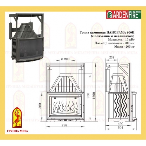 Каминная топка Мета Ardenfire Панорама 800П