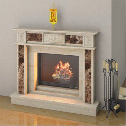 Облицовка изготовлена из натурального полированного мрамора кремового и коричневого цвета.