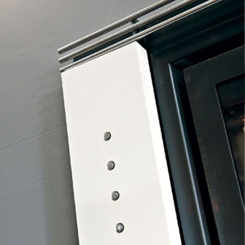 Обрамление из белого стонелита с декоративными стальными болтами.