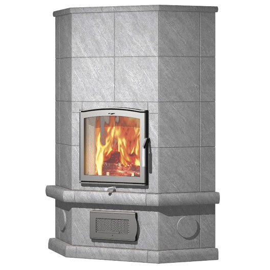 Угловой камин с задним нижним подключением. Для больших помещений.
